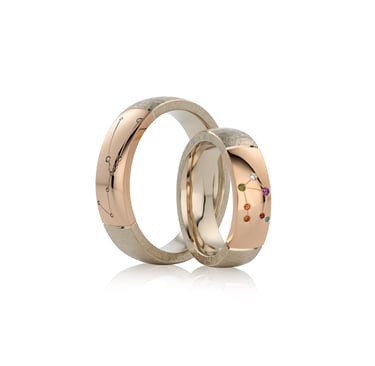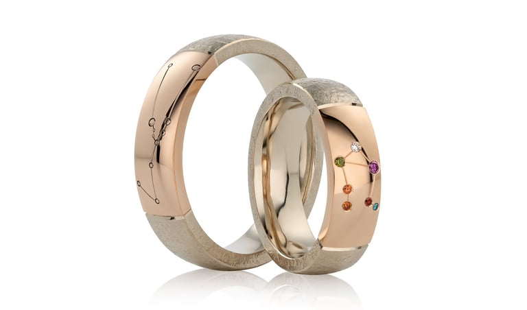 Paskutiniu metu viena iš dažniau pasitaikančių išskirtinių tendencijų – žiedai su zodiako žvaigždynais. Įdomus faktas – žvaigždės yra skirtingų spalvų, tad siekiant atkurti jų tikrumą naudojami skirtingų spalvų akmenys. Taip pat, galima naudoti dviejų spalvų auksą: viena dalis poliruota, kita su faktūra, taip perteikiant žvaigždynų subtilumą. Tai ne tik estetiškas, bet ir prasmingas pasirinkimas – kiekvienas žvaigždynas atspindi asmenines savybes, likimą ar net žmogaus gyvenimo kryptį.