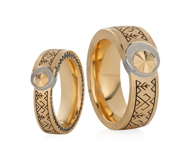 „Kartą teko gaminti žiedus, kuriuose susijungia keli simboliai: uroboras (gyvatė, ryjanti savo uodegą) kaip amžinybės ir cikliškumo ženklas, deimantai, simbolizuojantys žemės turtus bei saulės ir mėnulio motyvai. Taip pat, žieduose buvo išgraviruoti baltų raštai, suteikiantys žiedams dar gilesnę reikšmę. Tokie žiedai tampa ne tik asmeniniu, bet ir dvasiniu simboliu, atspindinčiu gyvenimo ciklus ir išlieka reikšmingi visą gyvenimą“, – patirtimi dalijasi juvelyras.