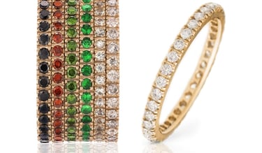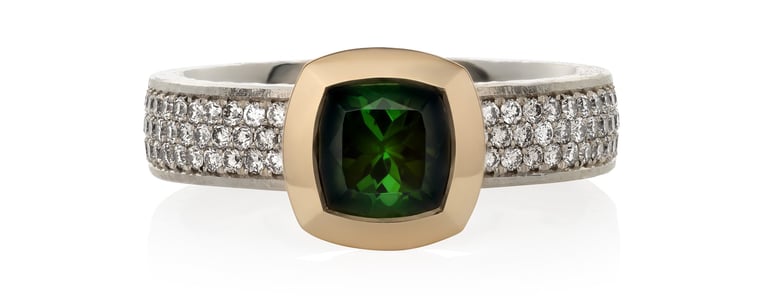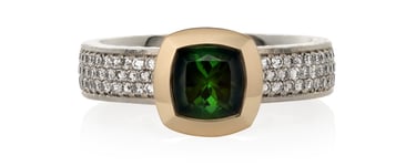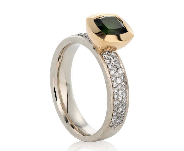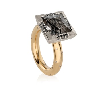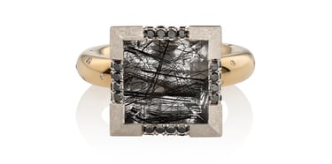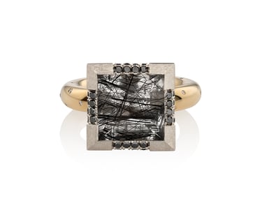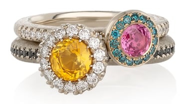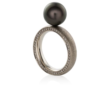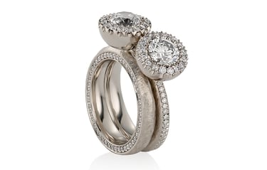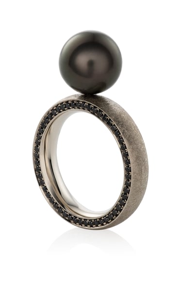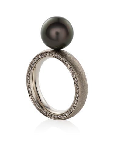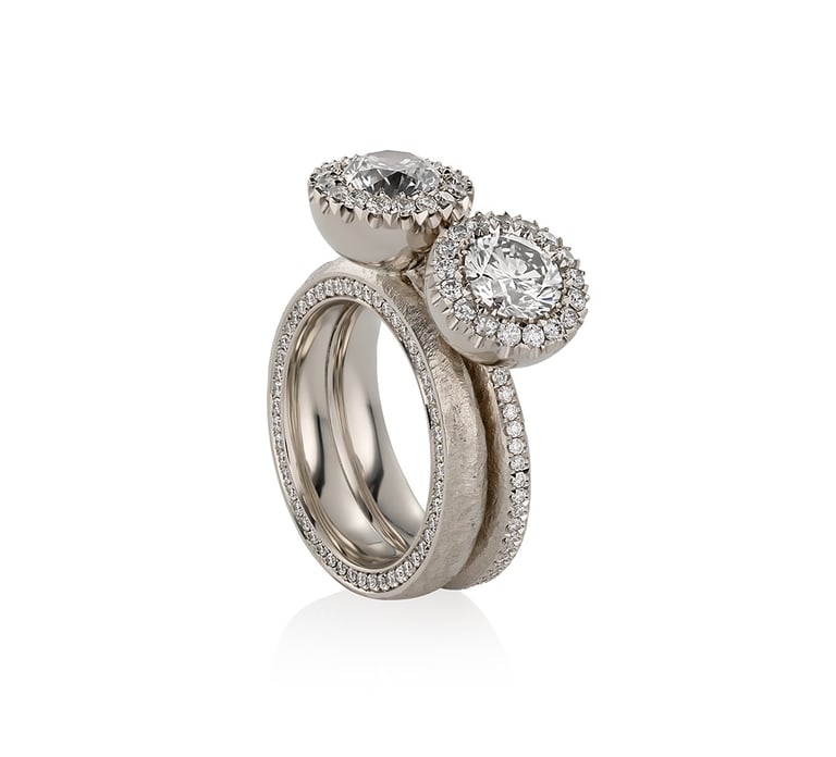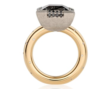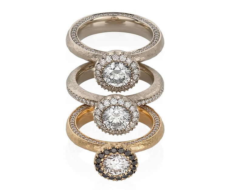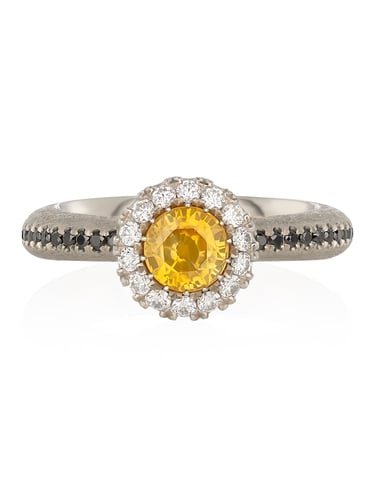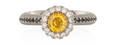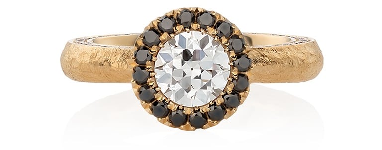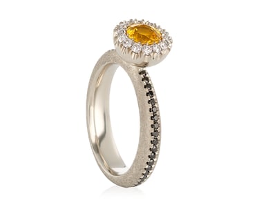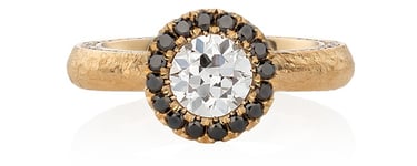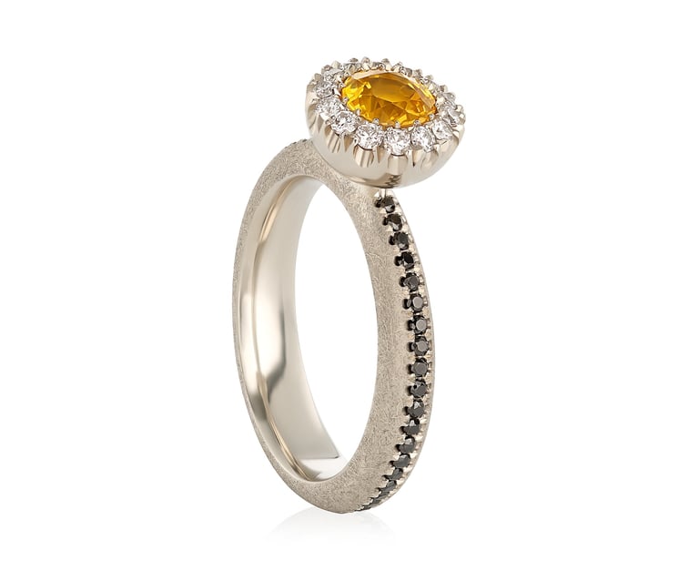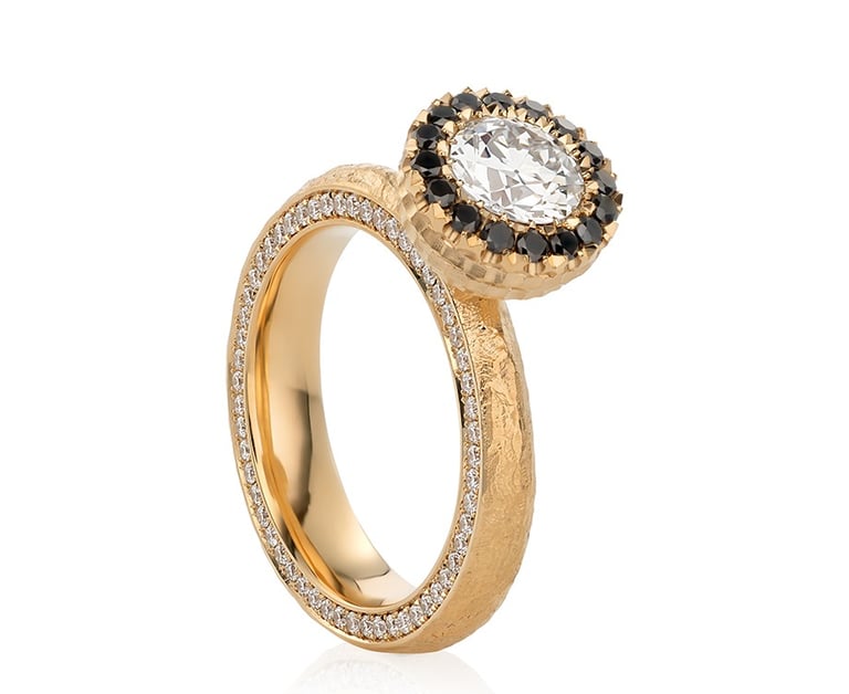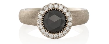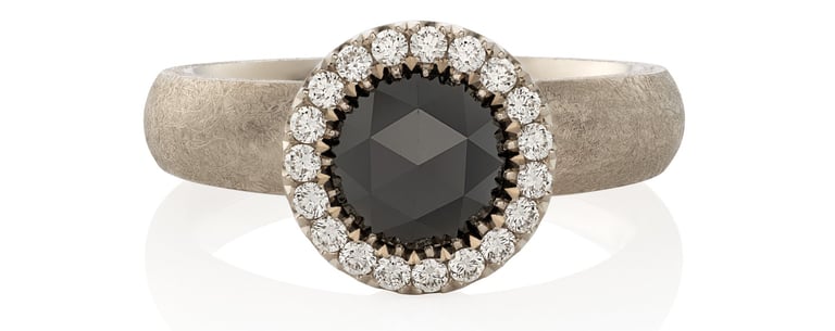 Centre: 0.9 ct baltas deimantas, aplink jį juodi deimantai