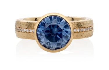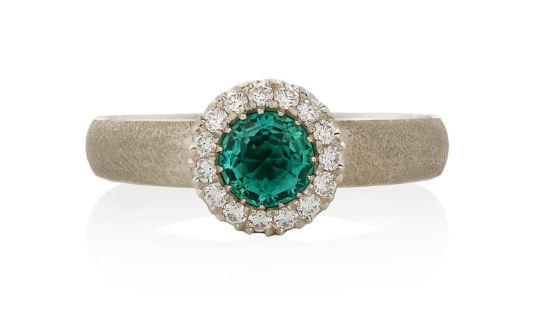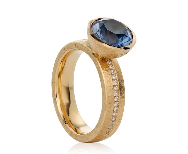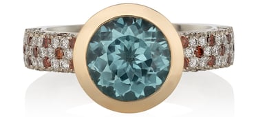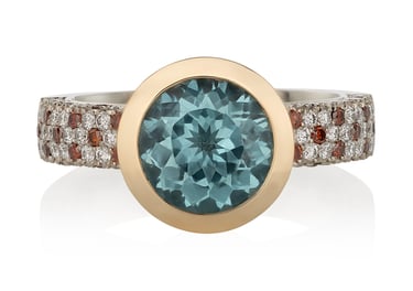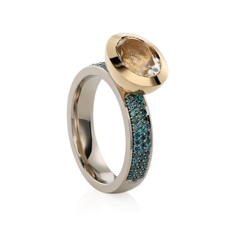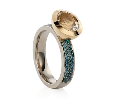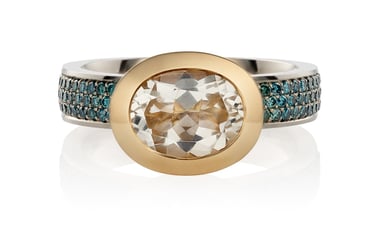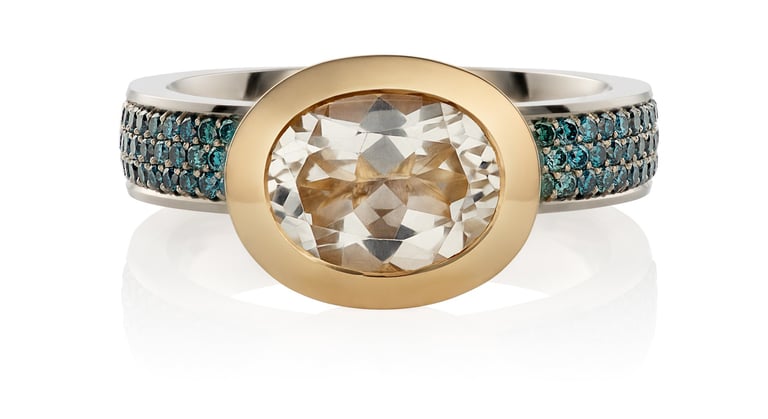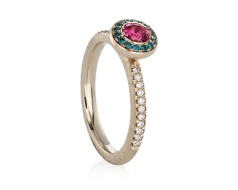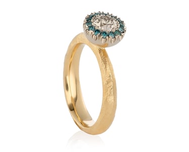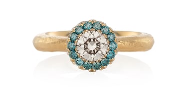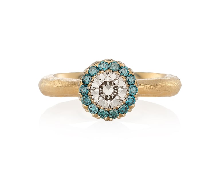 Aplink žiedą: 0,21 ct mėlynų deimantų