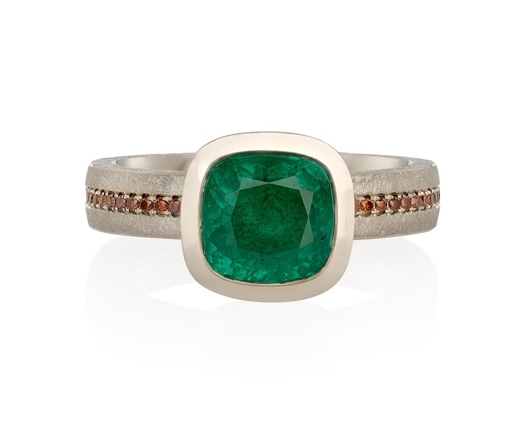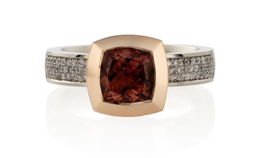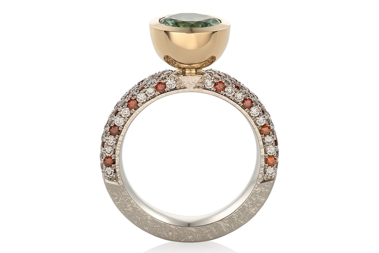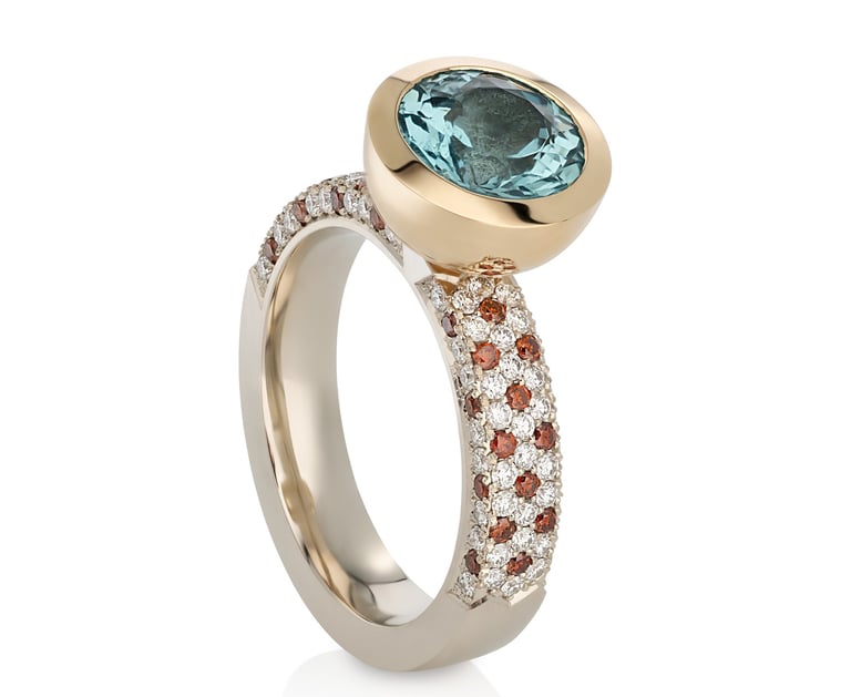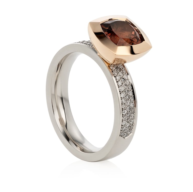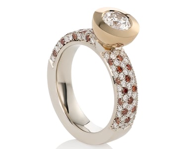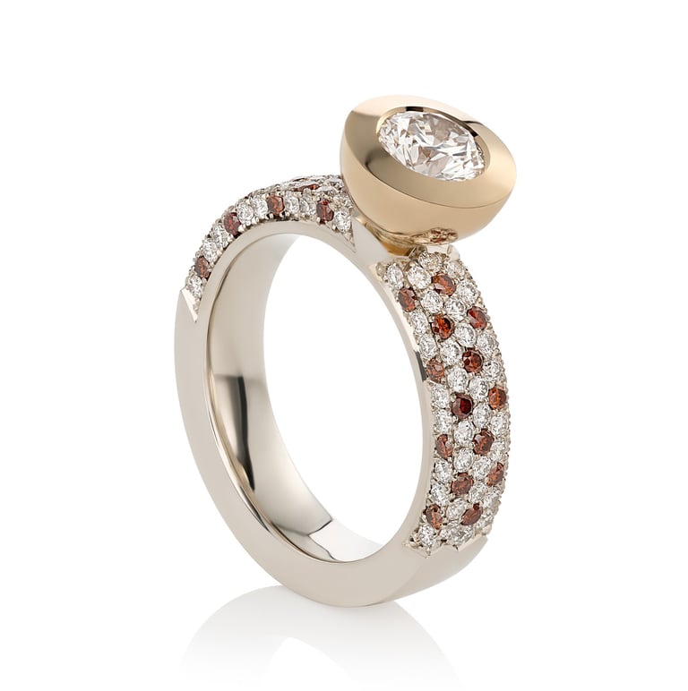Aplink žiedą 80 vnt deimantų (balti ir konjakiniai)