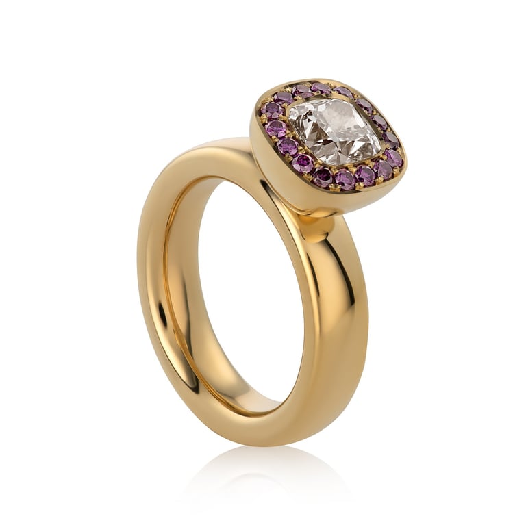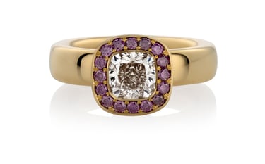 Aplink žiedą: 0,35 ct konjakinių deimantų