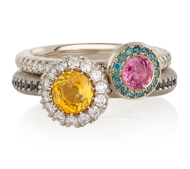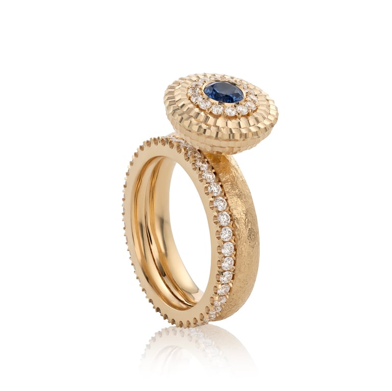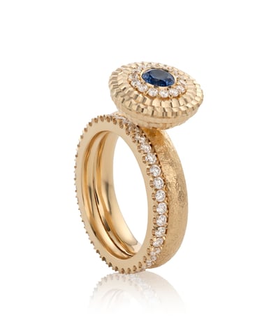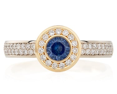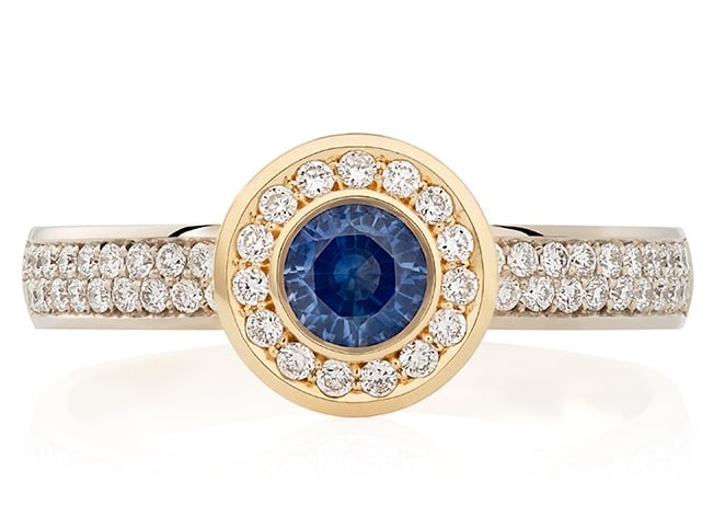 Aplink centrinį akmenį: 0,08 ct mėlynų deimantų